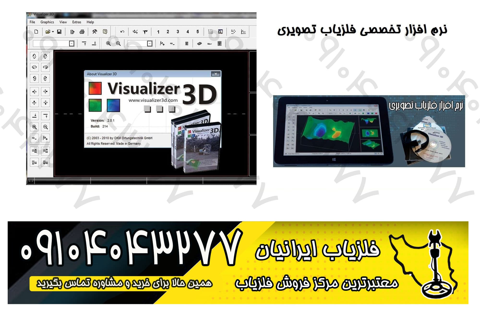 بعد از تعیین عمق برنامه سه بعدی ویژوالایزر می تواند اندازه حدودی جسم مدفون یا گنج را محاسبه کند.